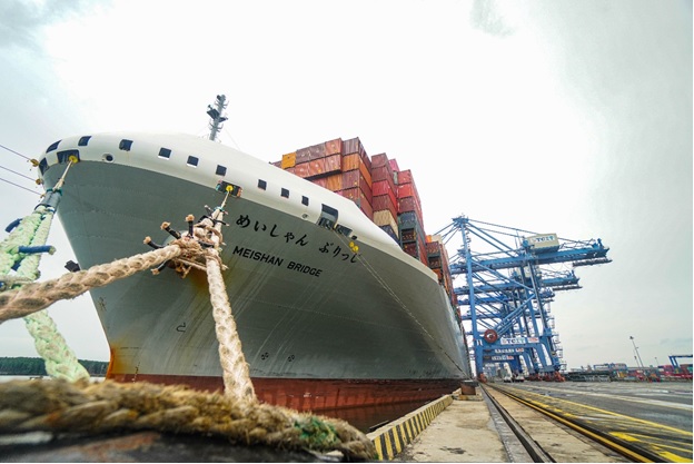 Tàu MEISHAN BRIDGE có chiều dài 366 mét và sức chở 14.235 TEU của hãng tàu Ocean Network Express (ONE) khai thác trên tuyến dịch vụ EC4 của liên minh THE (bao gồm các hãng tàu ONE, Hapag-Lloyd, Yang Ming và HMM), kết nối Việt Nam đi bờ Đông nước Mỹ. Để đảm bảo năng lực khai thác tàu với mức sản lượng xếp dỡ lên tới 14.235 TEU – cao hơn sức chở tàu 14.000 TEU và tương đương gần 30% sức chứa bãi chỉ trong vòng 55,7 giờ với năng suất làm hàng 145,34 container/giờ, vừa đảm bảo hoạt chi phí lưu trữ máu cuống rốn động sản xuất kinh doanh và công tác phòng chống dịch tại Cảng, TCIT đã nỗ lực hết sức trong việc bố trí trang thiết bị, sắp xếp bãi cũng như phân bổ nhân lực làm việc ngày đêm, đáp ứng quá trình làm hàng được thông suốt mà vẫn đảm bảo thời gian cập rời cho tàu theo lịch trình.