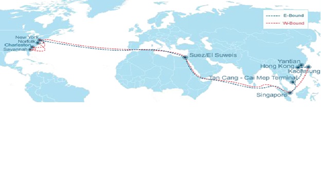 Hình 2: Lộ trình tuyến EC4 kết nối Việt Nam đi bờ Đông nước Mỹ