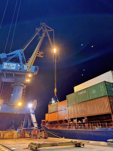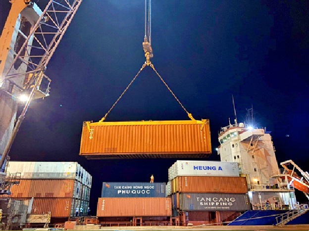 Phát huy tiềm năng thương mại xuất nhập khẩu tỉnh Hà Tĩnh, cảng Quốc tế Lào Việt- KCN Vũng Áng tiếp tục đón các tuyến dịch vụ khai thác tàu container của Vận tải biển Tân Cảng (Tan Cang Shipping) phục vụ vận chuyển hàng hóa xuất nhập khẩu kết nối Bắc- Nam đến các tỉnh khu vực miền Trung và ngược lại.