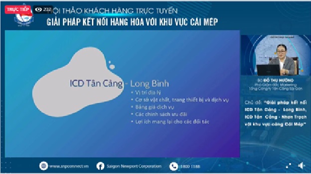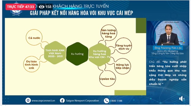 Nhằm cung cấp giải pháp hỗ trợ Khách hàng đảm bảo hoạt động xuất nhập khẩu thông suốt trong diễn biến phức tạp của dịch bệnh Covid-19, Tổng công ty Tân cảng Sài Gòn(TCSG) tổ chức Hội Thảo Khách Hàng Trực Tuyến lần đầu tiên với chuyên đề: “Giải Pháp Kết Nối Hàng Hóa Với Khu Vực Cái Mép”. Hội Thảo tập trung về các xu hướng, giải pháp kết nối chuỗi cung ứng cho hàng hóa xuất nhập khẩu đặc biệt luồng hàng hóa khu vực Đông Nam Bộ với khu vực cảng Cái Mép.