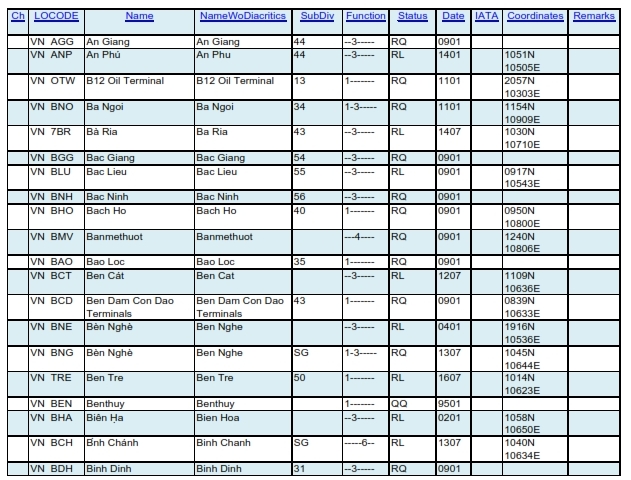 Trang chủ / Tiêu chuẩn / Bộ mã các cảng
